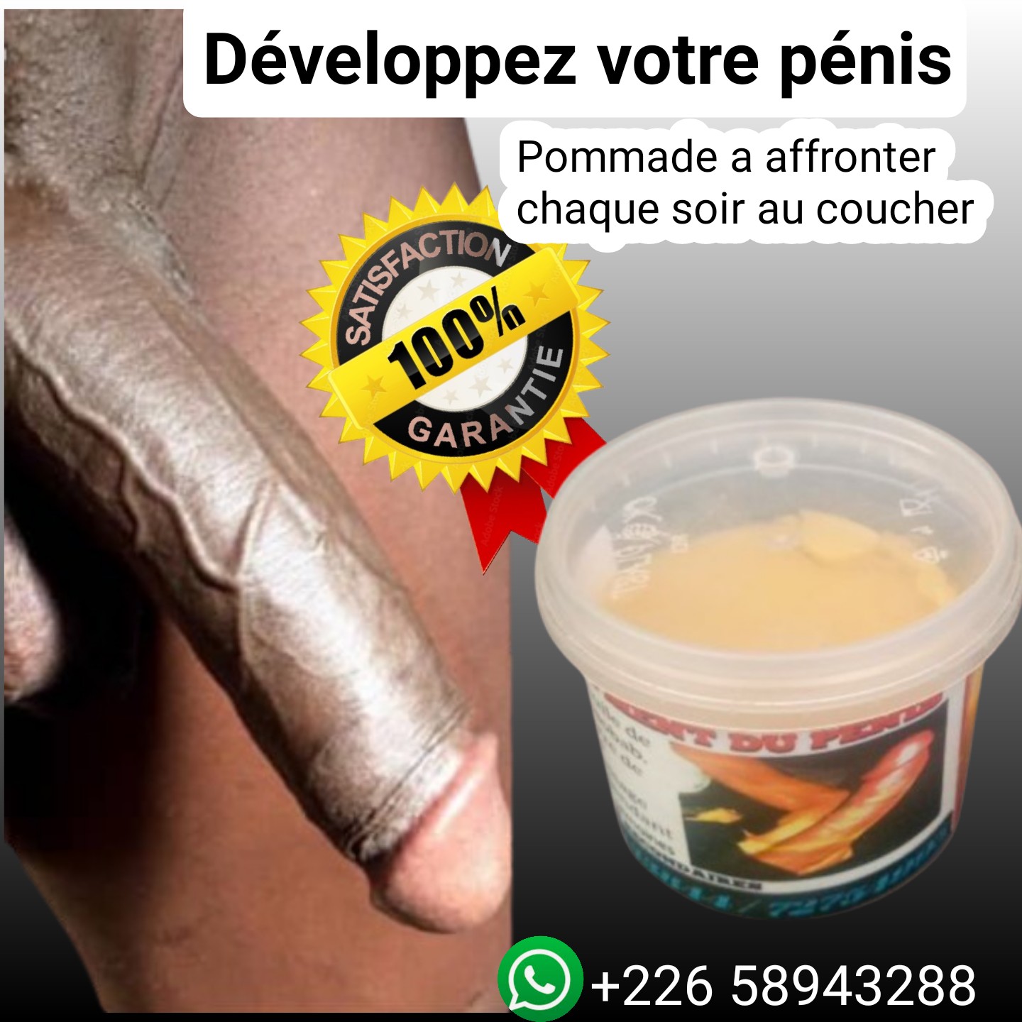 Grâce à ce produit vous n’aurez plus de complexe face à aucune femme. Il vous garantissent un grossissement du pénis en longueur et en forme.Le