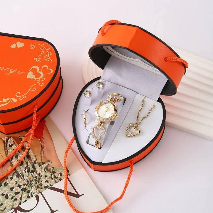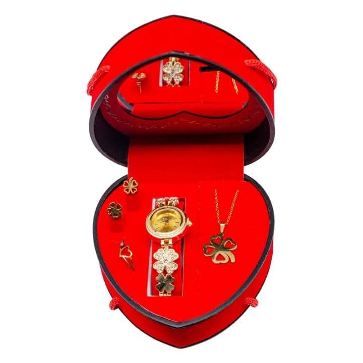 Offrez l’élégance suprême avec ce coffret cadeau femme complet, parfait pour toute occasion spéciale. Ce set de bijoux et montre comprend une montre chic, un collier raffiné, un bracelet délicat, une bague scintillante et des boucles d’oreilles assorties. Conçu pour faire plaisir, ce coffret est le cadeau idéal pour un anniversaire, la Saint-Valentin, ou simplement pour une surprise mémorable. Chaque pièce est sélectionnée pour sa qualité et son design intemporel, garantissant un look harmonieux et sophistiqué. Ce coffret cadeau femme est une excellente idée pour exprimer votre amour et votre appréciation, rehaussant instantanément le style de celle qui le reçoit. Un ensemble bijoux femme indispensable pour toute garde-robe, optimisé pour les recherches de cadeaux pour elle.