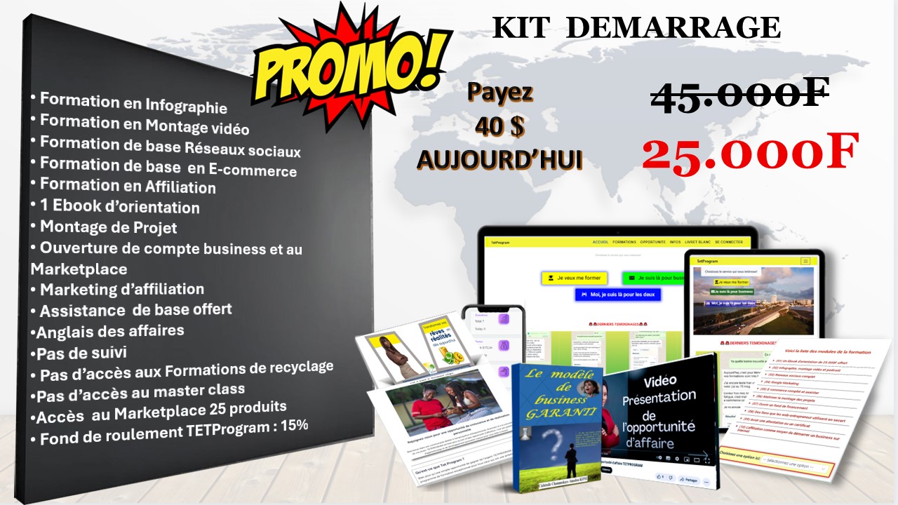 Le Kit Démarrage TETProgram est conçu pour toute personne qui souhaite découvrir le monde du digital, comprendre comment fonctionne Internet et apprendre à utiliser les outils numériques pour évoluer progressivement vers le business en ligne.