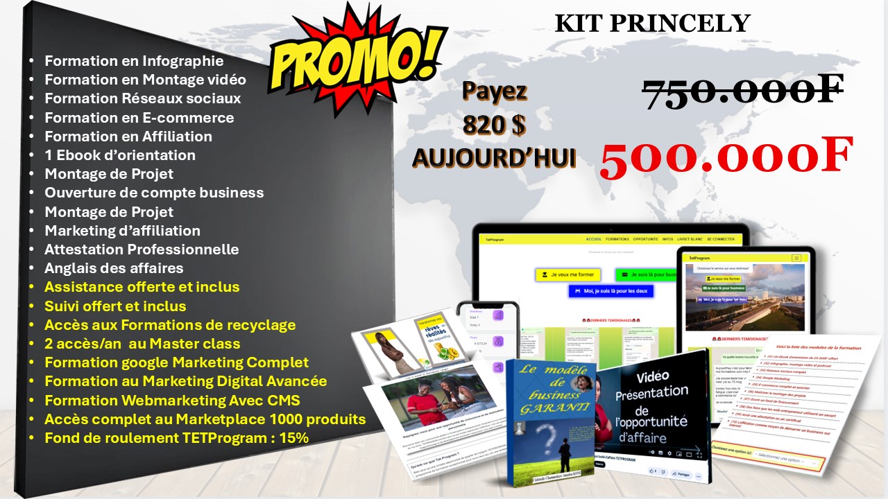 Le Kit Princely marque l’entrée dans le business digital structuré avec un accompagnement et un capital de démarrage.